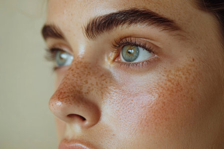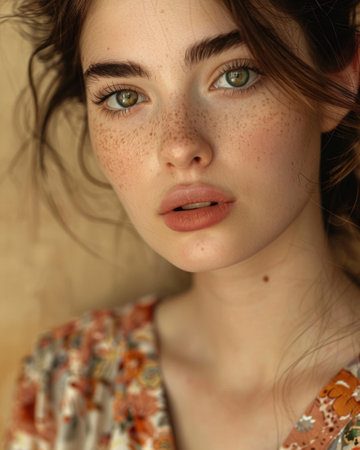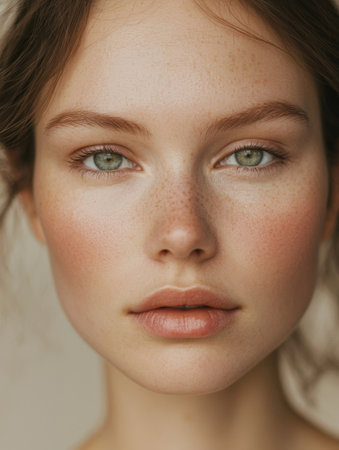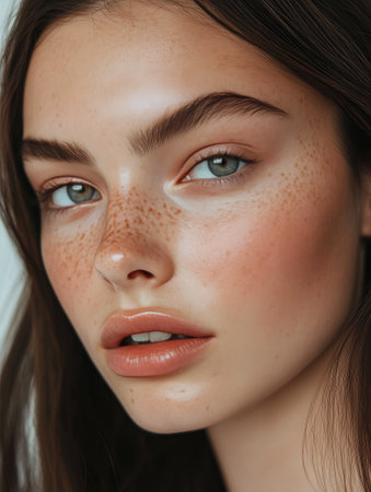 Close-Up of Freckled Model with Flawless Complexion