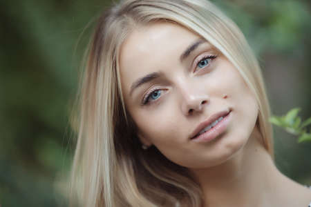 Beautiful young woman with natural make-up. Outdoor portrait.
