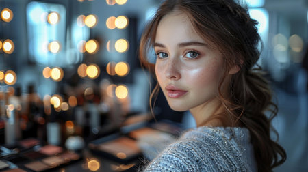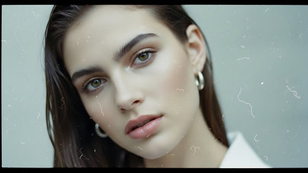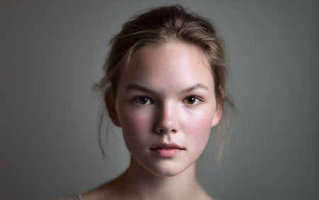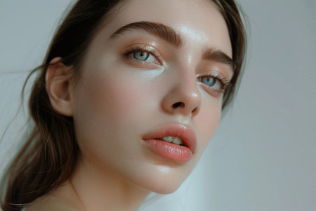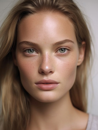 Portrait of a young woman with natural makeup. Created using AI generated technology and image editing software.