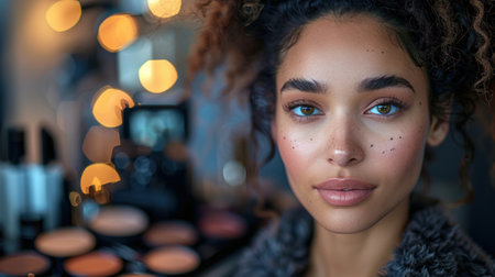Beautiful african american woman looking at camera in makeup room