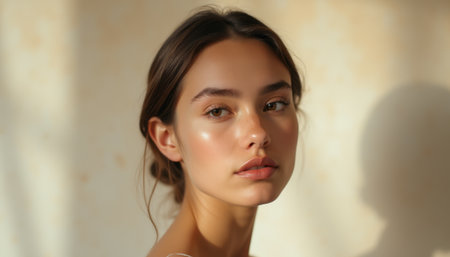 Radiant young woman with glowing skin in soft natural light