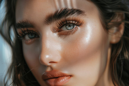 Portrait of a beautiful woman with voluminous eyelashes and smooth skin...