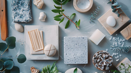 Explore a visually engaging collection of various materials and textures arranged thoughtfully, perfect for use in creative projects and interior design concepts.
