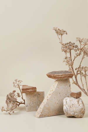 nature scene with composition of stones and dry flowers