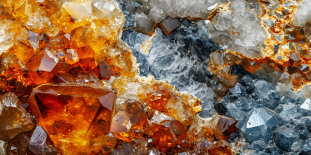 Vibrant Mineral Crystals Embedded in Rough Rock Texture for Geology and Science Themes