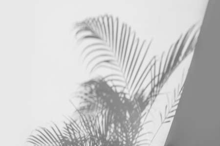 shadows palm leaf blur overlay on white wall texture background