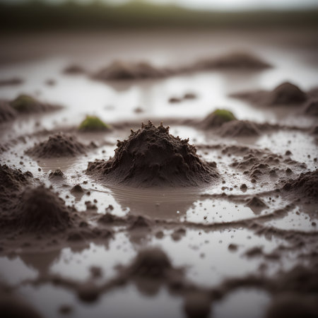 close-up of the thick, wet mud that makes up a landslide, created with generative ai