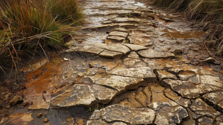 Close up of muddy puddle with cracked surface raw earthy texture seamless wallpaper background natural ground pattern organic detail for design decoration rustic environmental style