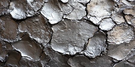 Detailed view of a cracked surface showing intricate patterns and textures caused by natural geological processes. Created with Generative AI