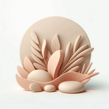 3d render, abstract composition made of natural elements, beige and brown tones