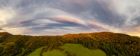 Morning evening panoramic sunset view of beautiful sky from Bohemian and Moravian highland near Krasne village