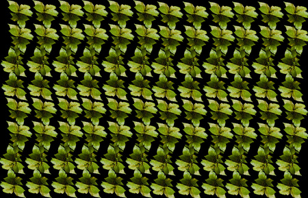 A repeating geometric pattern formed by lush green banana leaves with visible veins and textures.
