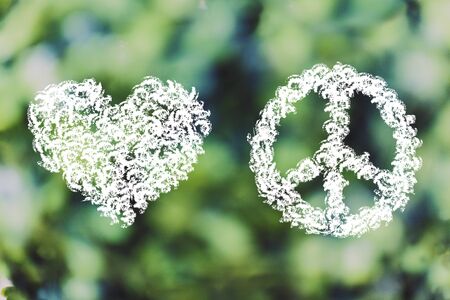 peace and love heart symbol, minimal chalk outline illustration made of leaves