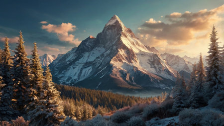 Majestic autumn mountains landscape with vibrant foliage and snow