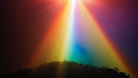 Rainbow on the mountain at night with the light of the sun