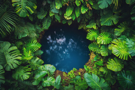 Experience the tranquil beauty of a remote tropical water body framed by vibrant green foliage, creating a serene and peaceful nature escape.