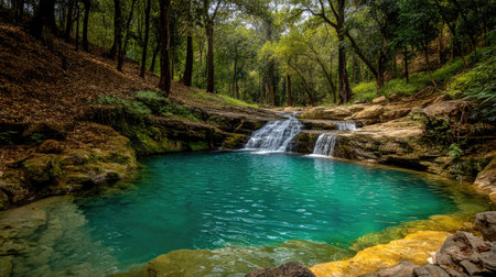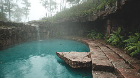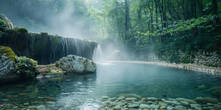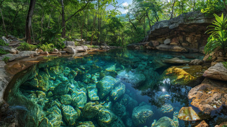 A breathtaking view of a natural mineral spring nestled in a lush forest