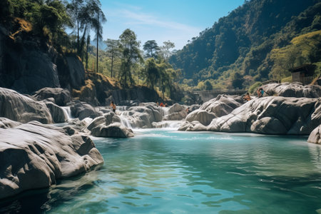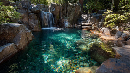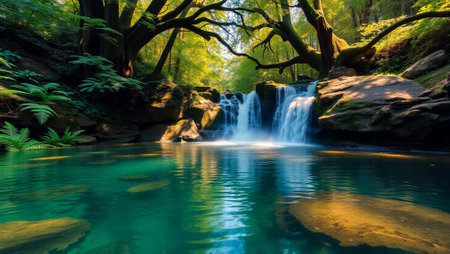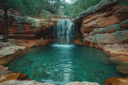 waterfall, cascading into pool of crystal-clear water, created with generative ai