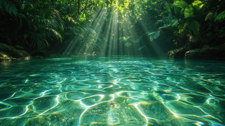 Tropical rainforest with sun rays in the water. Nature background