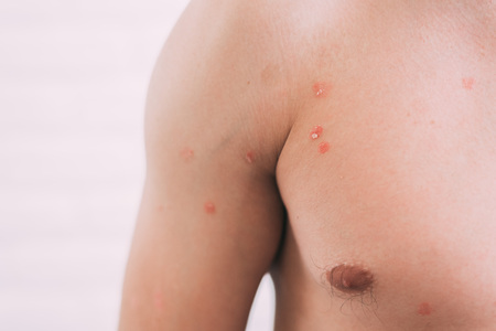 Papules on the skin of a patient with chickenpox close-up. Varicella Zoster virus.