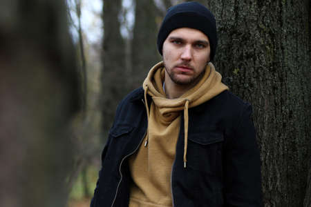 Young beard man in an autumn