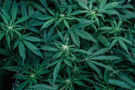 Green sativa background. Growing cbd thc cannabis. Weed green herb.