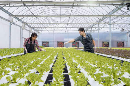 farmer cultivate healthy nutrition organic salad vegetables in hydroponic agribusiness farm.