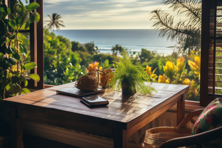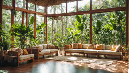 interior of an eco-friendly house, tropical leaves