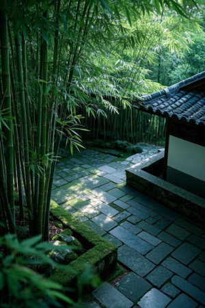 Chinese-style courtyard bamboo forest and stone pavement
