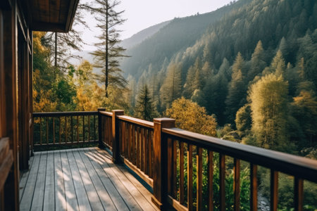 photo of hotel balcony with forest view Photography AI Generated