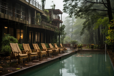 swimming pool in the heavy rain professional photography