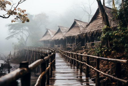 Nestled amidst the serene and picturesque landscapes of rural Thailand, a small hut stands proudly, constructed with locally sourced materials and reflecting the simplicity and tranquility of its surroundings.