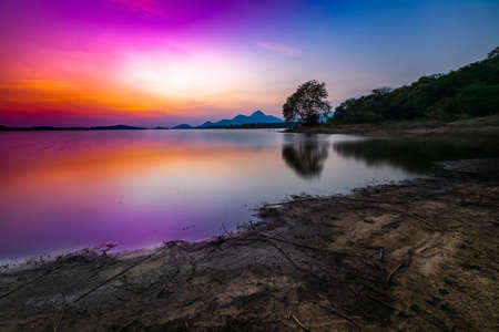The sun rises and the sun sets at Pilok sub-district, Kanchanaburi province, Thailand.
