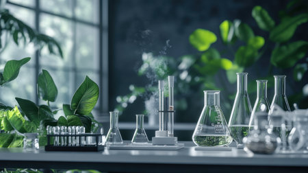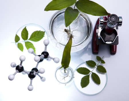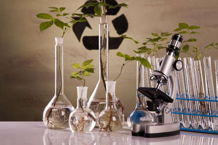 Green plants and scientific equipment in biology laborotary