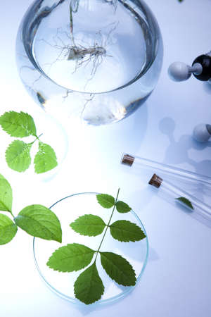 Natural organic botany and scientific glassware, Alternative herb medicine. Research and development concept.Laboratory research and development.Work pharmacist.Control of the composition of drugs. Development of new vaccines.