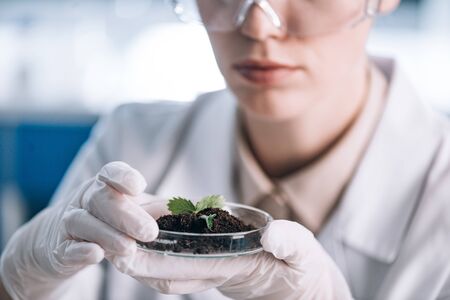 Genetically modified plant tested in petri dish .Ecology laboratory