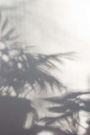 Blurred shadow from leaves plants on the white wall. Minimal abstract background.