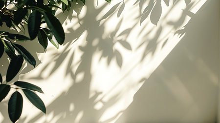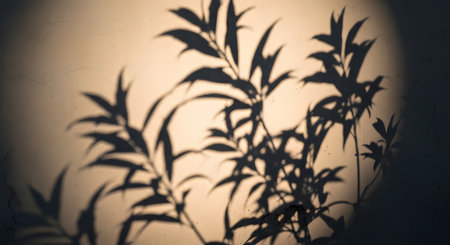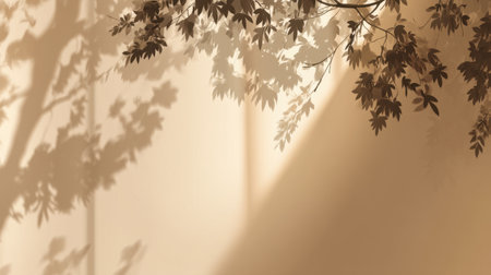 Shadows of leaves on a cream wall, minimalist nature concept