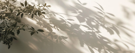 Subtle shadows of green leaves dance on a soft cream background, creating a calming ambiance that evokes feelings of serenity and connection with nature.