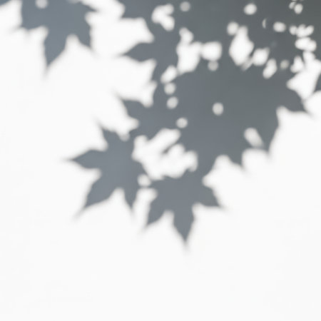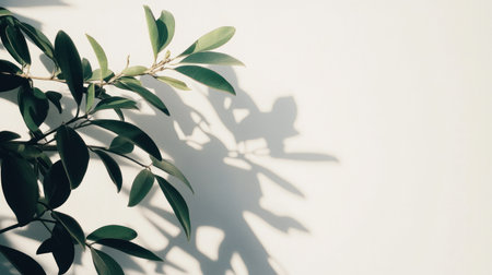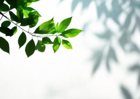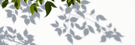 Green leaves cast delicate shadows on a white background
