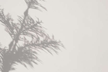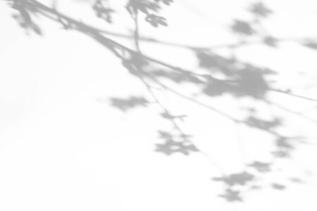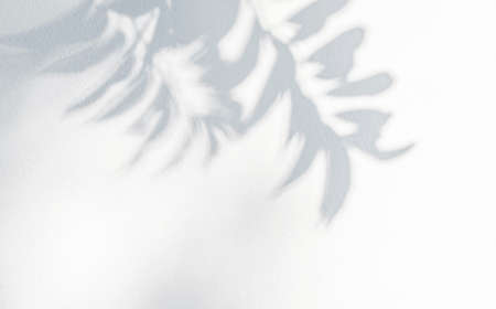 Shadow of leaf on white wall. Abstract background and texture for design.
