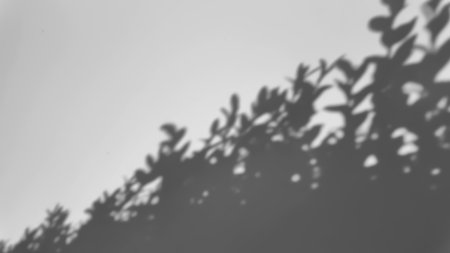 Shadow overlay effect. Blur shadows of plants and tree leaves on a white clean wall.