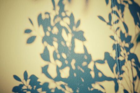 Shadow of leaves on solid beige wall texture background