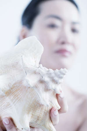 Rapana marine gastropod mollusks . Conch at white background , studio shot