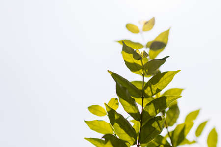 Fresh green leaves in sunlight for nature background with copy space.