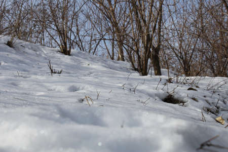 beautiful fallen white snow with blue sky on Sunny frosty day, winter season