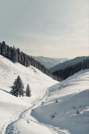 Snowy Mountain Winter Landscape Scene Beautiful Nature Cold Season Forest Trees icy pine view calm