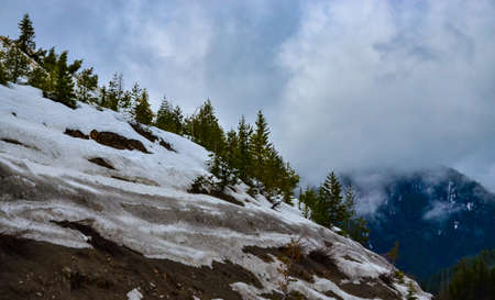 Snow in the mountains at the end of winter, snow melting in the mountains. Mountain landscape. Montana
