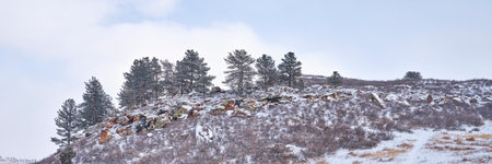 winter landscape of foothills of Rocky Mountains in Colorado - Lory State Park near Fort Collins, panoramic web banner