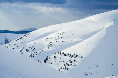 Winter landscape in the Carpathian Mountains. Ukraine, Europe.